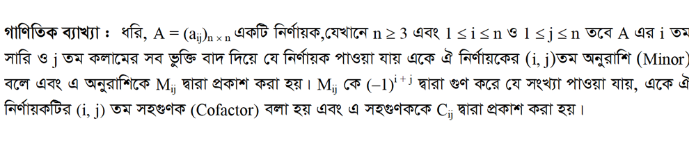১.৮ নির্ণায়কের অনুরাশি ও সহ গুণক ব্যাখ্যা করো? ( Explain the determinants of coefficients and coefficients?)