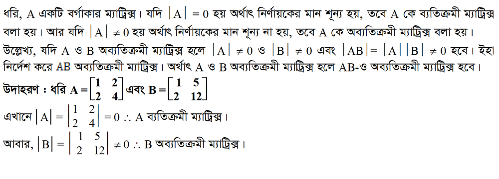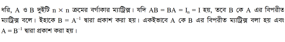 ১.১১ বর্গ ম্যাট্রিক্সের বিপরিত ম্যাট্রিক্স ব্যাখ্যা কর? ( Explain inverse metrics of square metrics?)