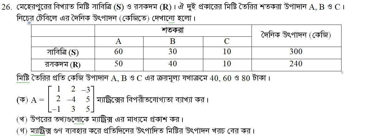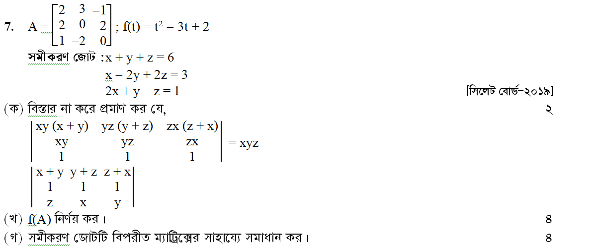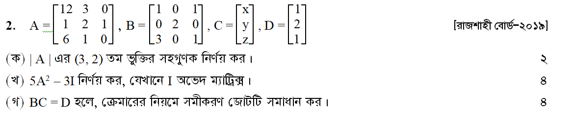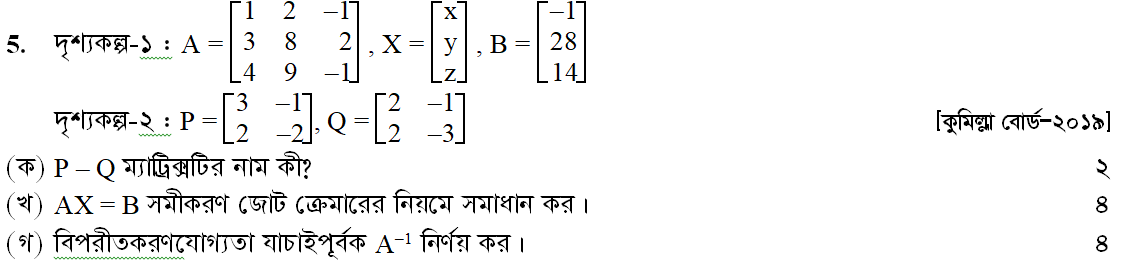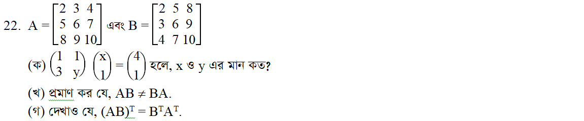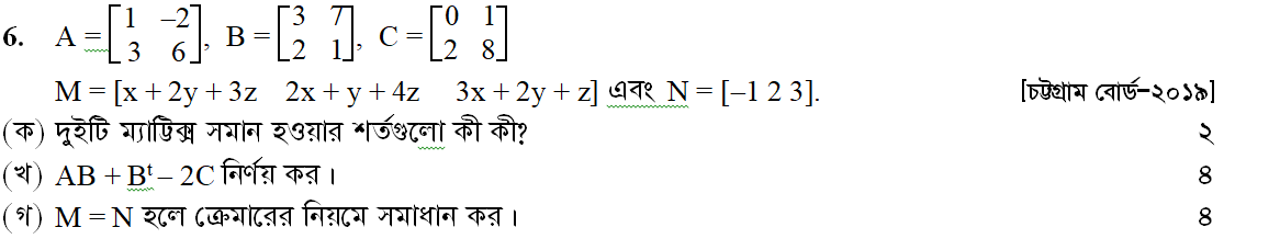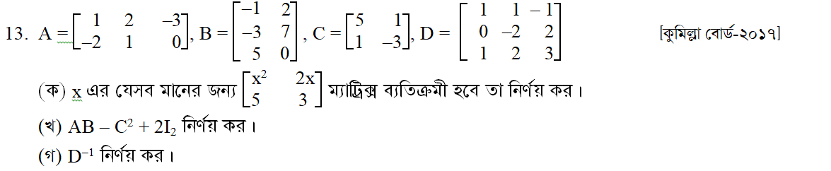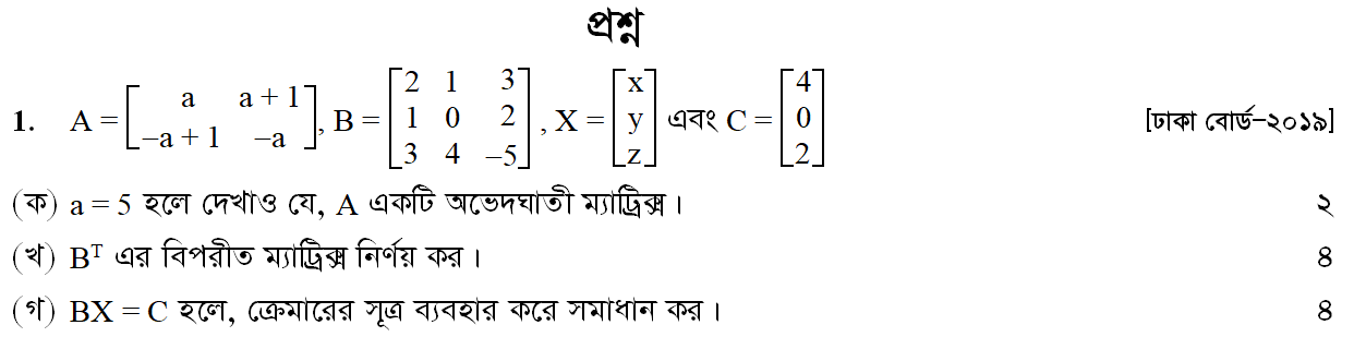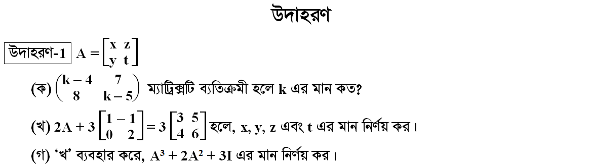 প্রথম অধ্যায় | ম্যাট্রিক্স ও নির্ণায়ক ( Matrices and Determinants)