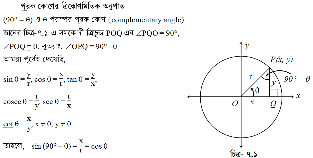 সপ্তম অধ্যায় | সংযুক্ত কোণের ত্রিকোণমিতিক অনুপাত (TRIGONOMETRIC RATIOS OF ASSOCIATED ANGLES)
