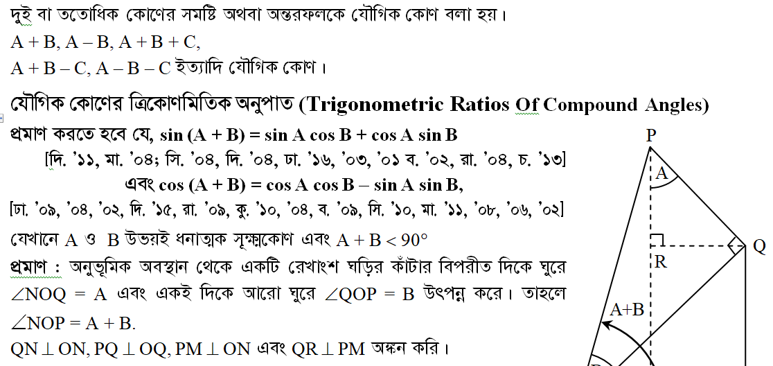 ৭.২ যৌগিক কোণ (Compound angle)