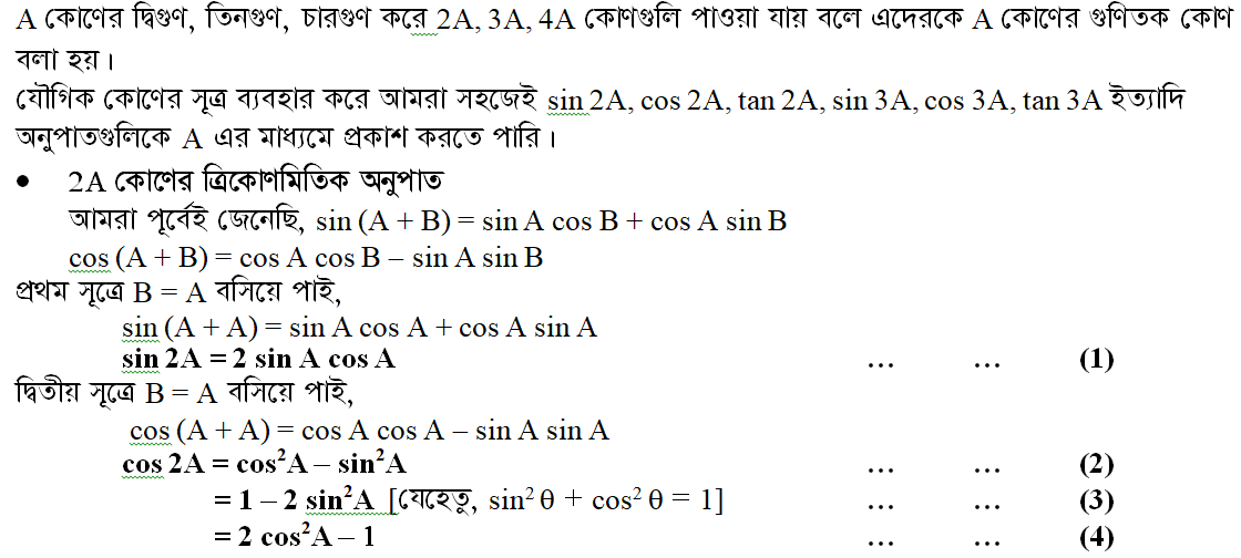 ৭.৩ গুণিতক কোণের ত্রিকোণমিতিক অনুপাত (Trigonometric Ratios of Multiple Angles)