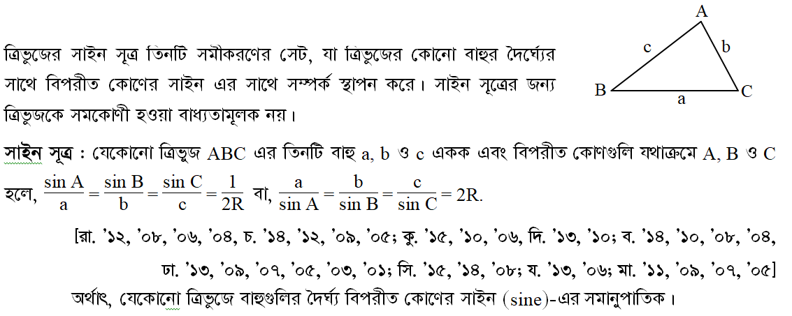 ৭.৫ ত্রিভুজের সাইন সূত্র (Sine Rule of Triangle)