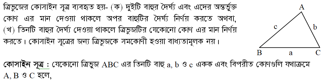 ৭.৬ ত্রিভুজের কোসাইন সূত্র (Cosine Rule of Triangle)