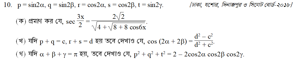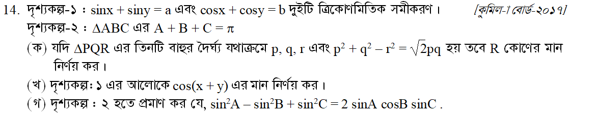 সপ্তম অধ্যায় | সংযুক্ত কোণের ত্রিকোণমিতিক অনুপাত (TRIGONOMETRIC RATIOS OF ASSOCIATED ANGLES)