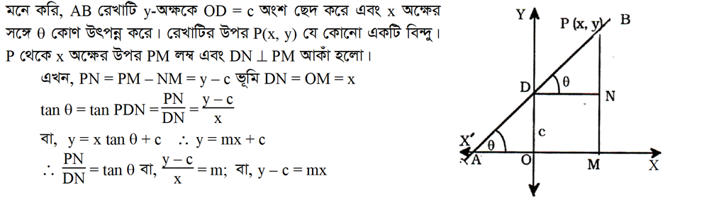 ৩.১০.২ একটি সরলরেখার সমীকরণ নির্ণয় করতে হবে যা y- অক্ষকে কোনো নির্দিষ্ট বিন্দুতে ছেদ করে এবং x- অক্ষের সাথে একটি ধনাত্নক কোন উৎপন্ন করে