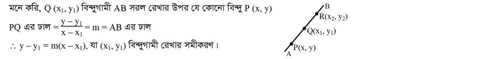 ৩.১০.৩ (x1,y1) বিন্দু দিয়ে অতিক্রম করে এবং m ঢাল বিশিষ্ট সরল রেখার সমীকরণ নির্ণয় করো:
