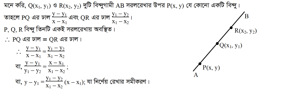 ৩.১০.৪ দুইটি নির্দিষ্ট বিন্দু দিয়ে অতিক্রমকারী সরলরেখার সমীকরণ নির্ণয় করো: