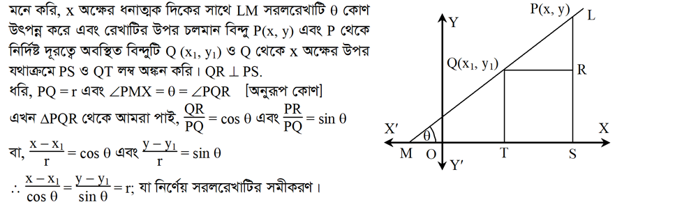 ৩.১১.১ x- অক্ষের ধনাত্নক দিকের সাথে নির্দিষ্ট কোন উৎপন্ন করে ও চলমান বিন্দু থেকে নির্দিষ্ট দূরত্বে বিন্দু দিয়ে অতিক্রমকারী সরলরেখার সমীকরণ নির্ণয় কর?