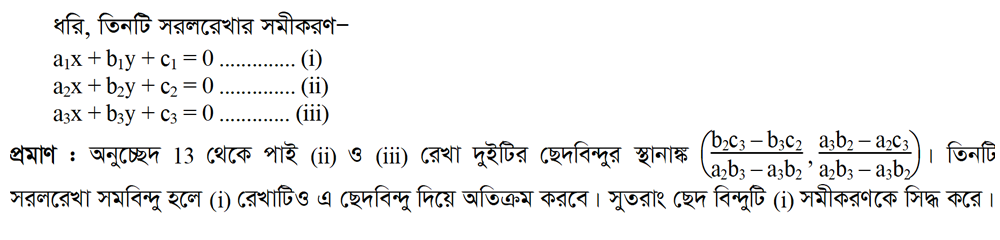 ৩.১২.৩ তিনটি সরলরেখার সমবিন্দু হওয়ার শর্ত: