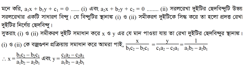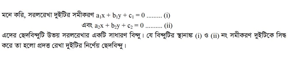 ৩.১৫.৩ দুইটি ওসমান্তরাল সরলরেখার ছেদবিন্দু নির্ণয়: