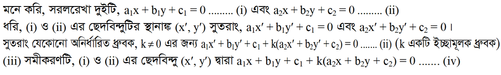 ৩.১২.২ দুইটি সরলরেখার ছেদবিন্দুগামী যেকোনো সরলরেখার সমীকরণ নির্ণয়: