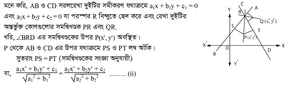 ৩.১৬.৪ দুইটি অসমান্তরাল সরলরেখার মধ্যবর্তী কোণের সমদ্বিখন্ডকের সমীকরণ নির্ণয় কর?