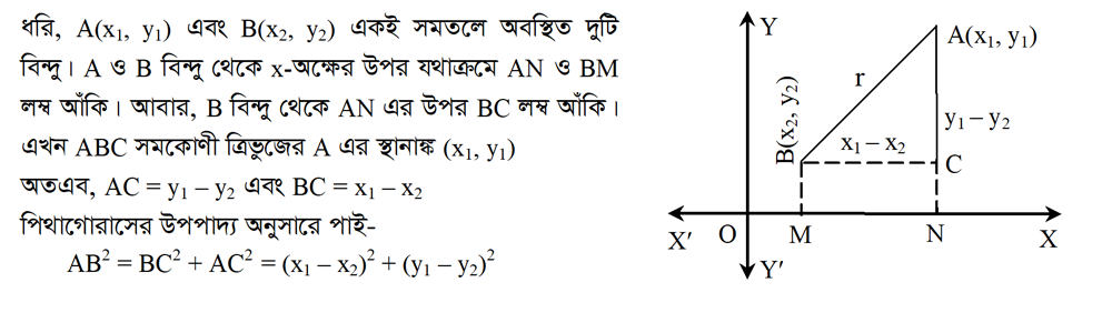 ৩.৩ দুইটি বিন্দুর মধ্যবর্তি দূরত্ব নির্ণয়ের সুত্র প্রতিষ্ঠা ও প্রয়োগ কর?