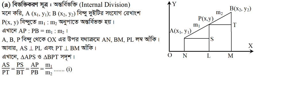 ৩.৪ কোনো রেখাংশকে নির্দিষ্ট অনুপাতে বিভক্তিকারী বিন্দুর স্থানাংক নির্ণয় কর?