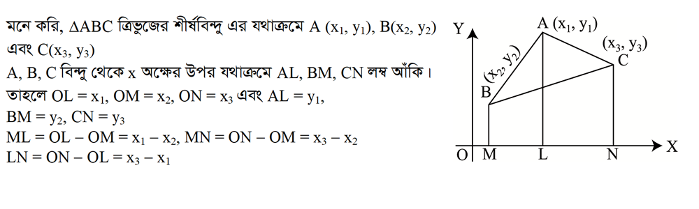 ৩.৫ ত্রিভুজের শীর্ষবিন্দুর স্থানাঙ্কের মাধমে ত্রিভুজের ক্ষেত্রফল নির্ণয়ের সুত্র প্রতিষ্ঠা ও প্রয়োগ কর?