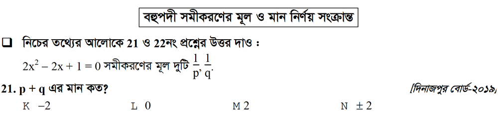 চতুর্থ অধ্যায় | বহুপদী ও বহুপদী সমীকরণ (POLYNOMIALS AND POLYNOMIAL EQUATIONS)