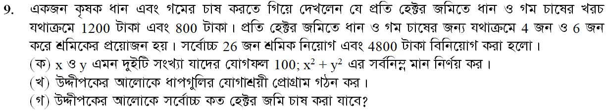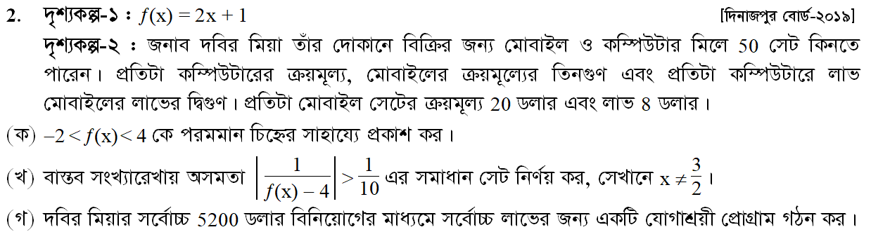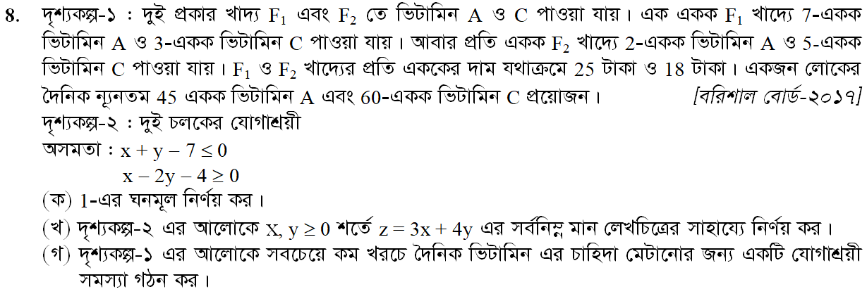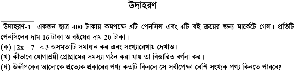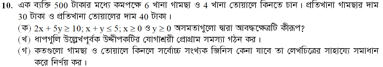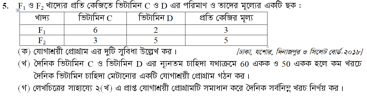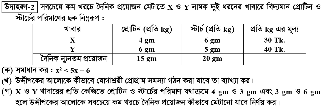দ্বিতীয় অধ্যায় | যোগাশ্রয়ী প্রোগ্রাম (LINEAR PROGRAMMING)
