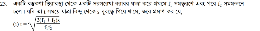 নবম অধ্যায় | সমতলে বস্তুকণার গতি (MOTION OF PARTICLES IN A PLANE)