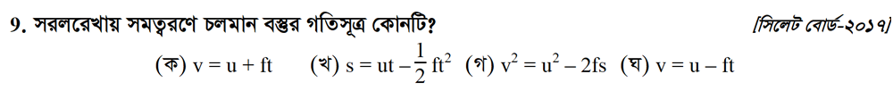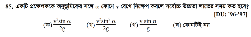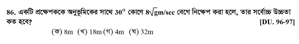 নবম অধ্যায় | সমতলে বস্তুকণার গতি (MOTION OF PARTICLES IN A PLANE)