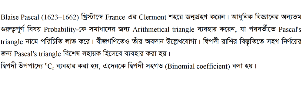 ৫.৩ প্যাসকেলের ত্রিভুজ (Pascal's Triangle)