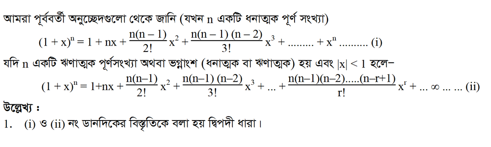 ৫.৫ অসীম ধারায় দ্বিপদী বিস্তৃতি (Binomial Expansion in Infinite Series)