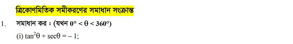 সপ্তম অধ্যায় | বিপরীত ত্রিকোণমিতিক ফাংশন ও ত্রিকোণমিতিক সমীকরণ (INVERSE TRIGONOMETRIC FUNCTIONS AND TRIGONOMETRIC EQUATIONS)