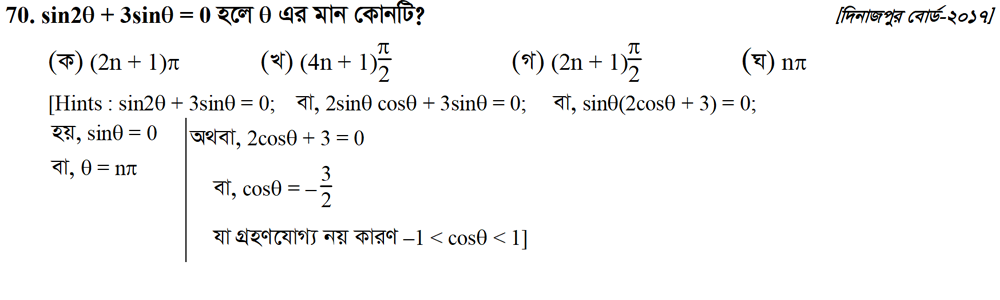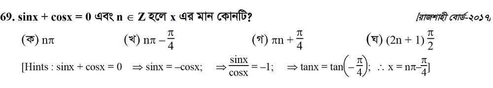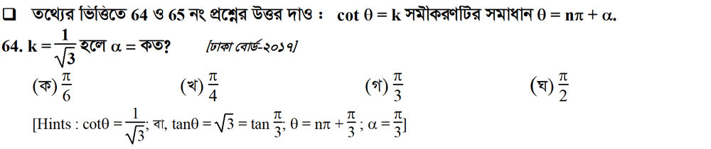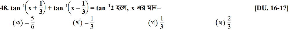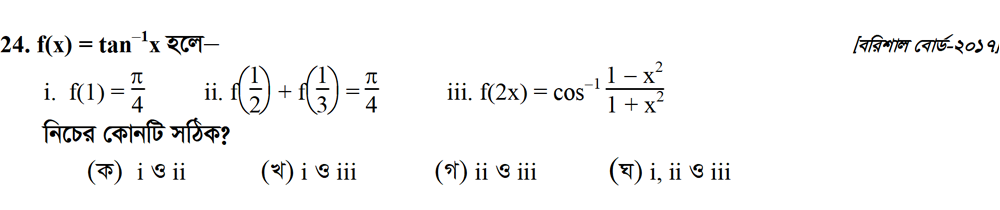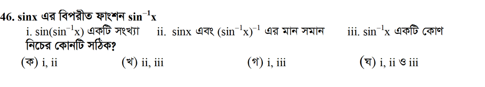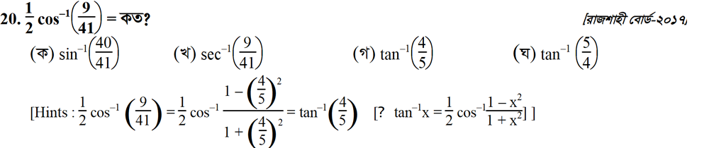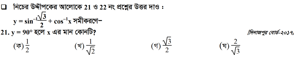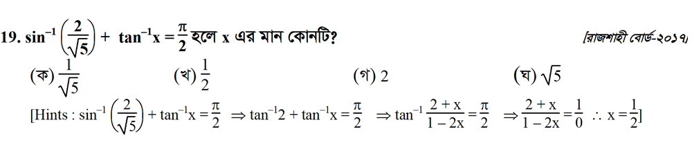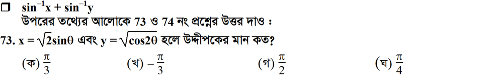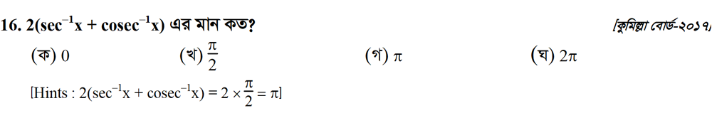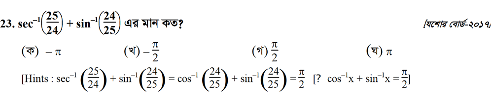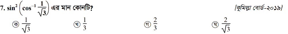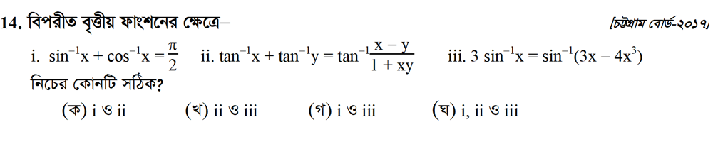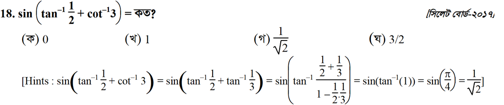 সপ্তম অধ্যায় | বিপরীত ত্রিকোণমিতিক ফাংশন ও ত্রিকোণমিতিক সমীকরণ (INVERSE TRIGONOMETRIC FUNCTIONS AND TRIGONOMETRIC EQUATIONS)