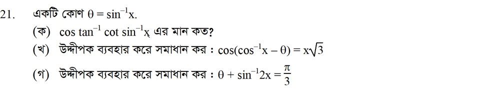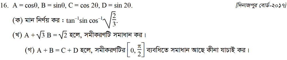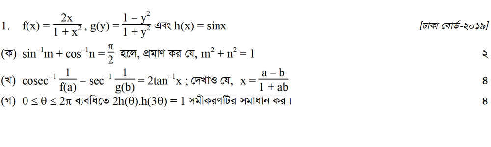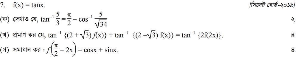 সপ্তম অধ্যায় | বিপরীত ত্রিকোণমিতিক ফাংশন ও ত্রিকোণমিতিক সমীকরণ (INVERSE TRIGONOMETRIC FUNCTIONS AND TRIGONOMETRIC EQUATIONS)